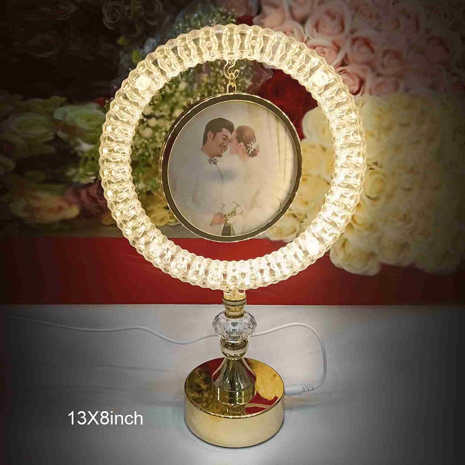 Crystal LED Light Photo Frame Round (Circle) Shape with Hanging Photo Frame | Two Side Custom ROUND Photo, Touch Base Modern Photo Frame, Night Table lamp, Home Decor, Good for Gifting