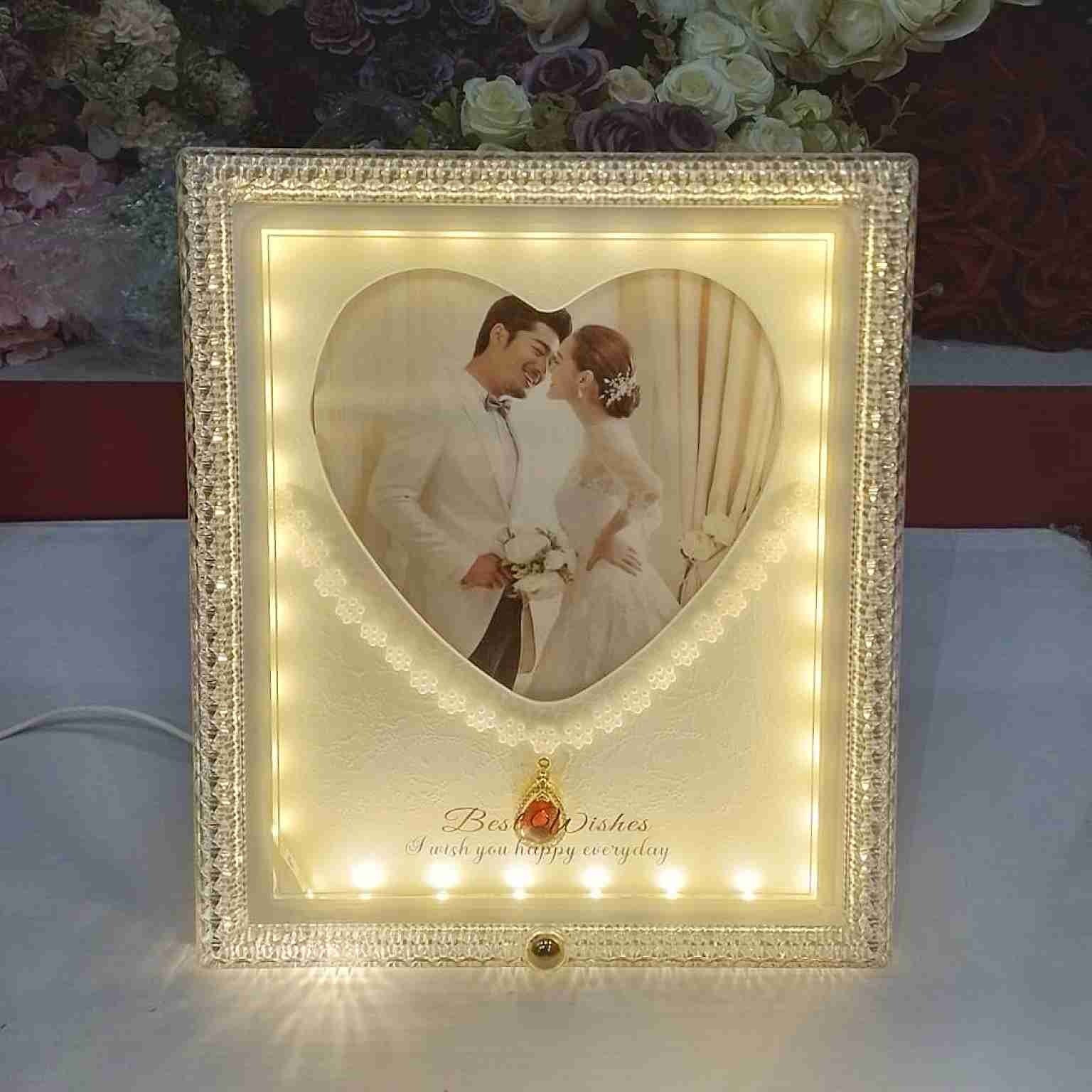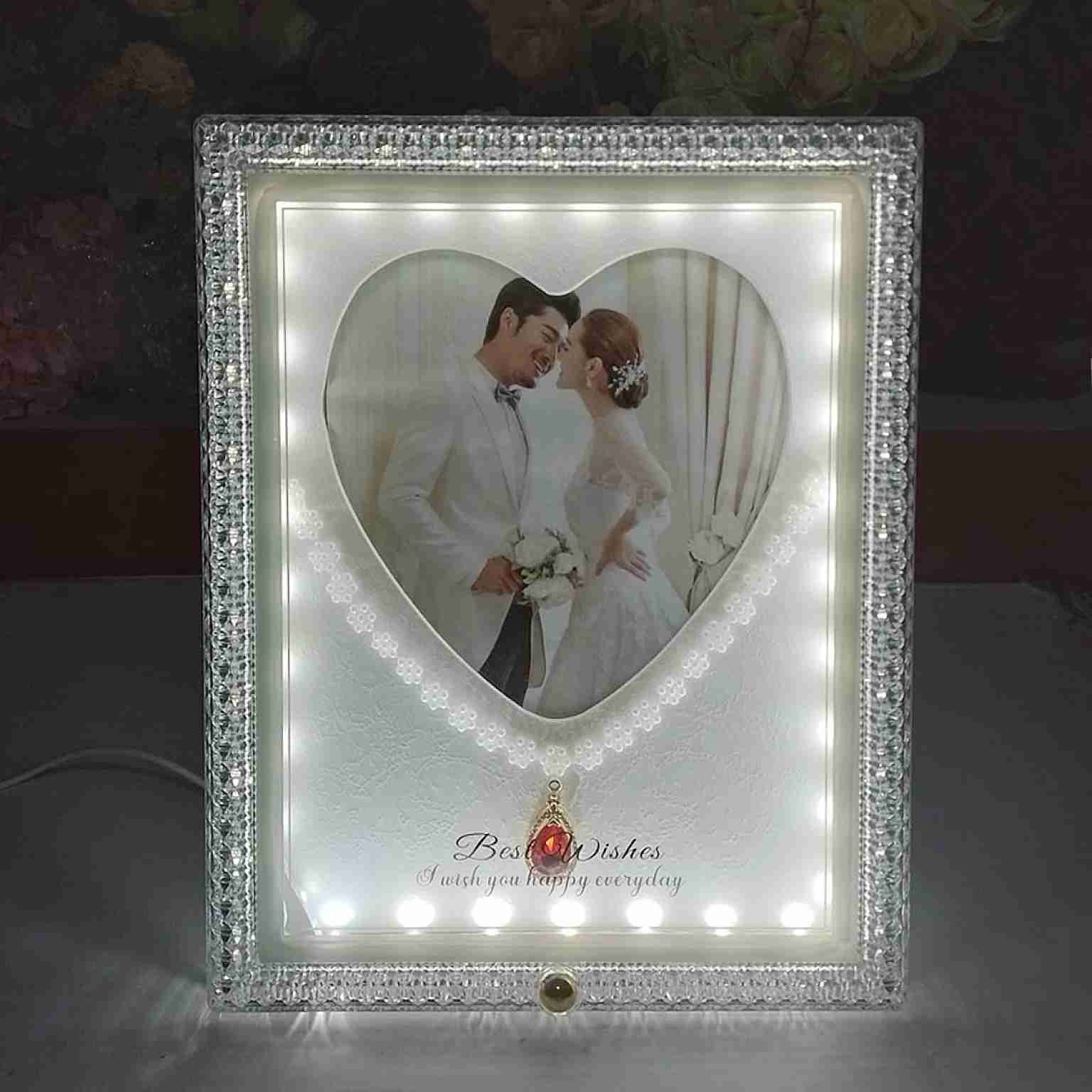 Crystal LED Photo Frame, Touch Sensor Multicolor Light Photo Frame Scure Frame with Heart Shaped Photo, Red Stone Decorating. Anniversary Gift, Wedding Gift, Living Room