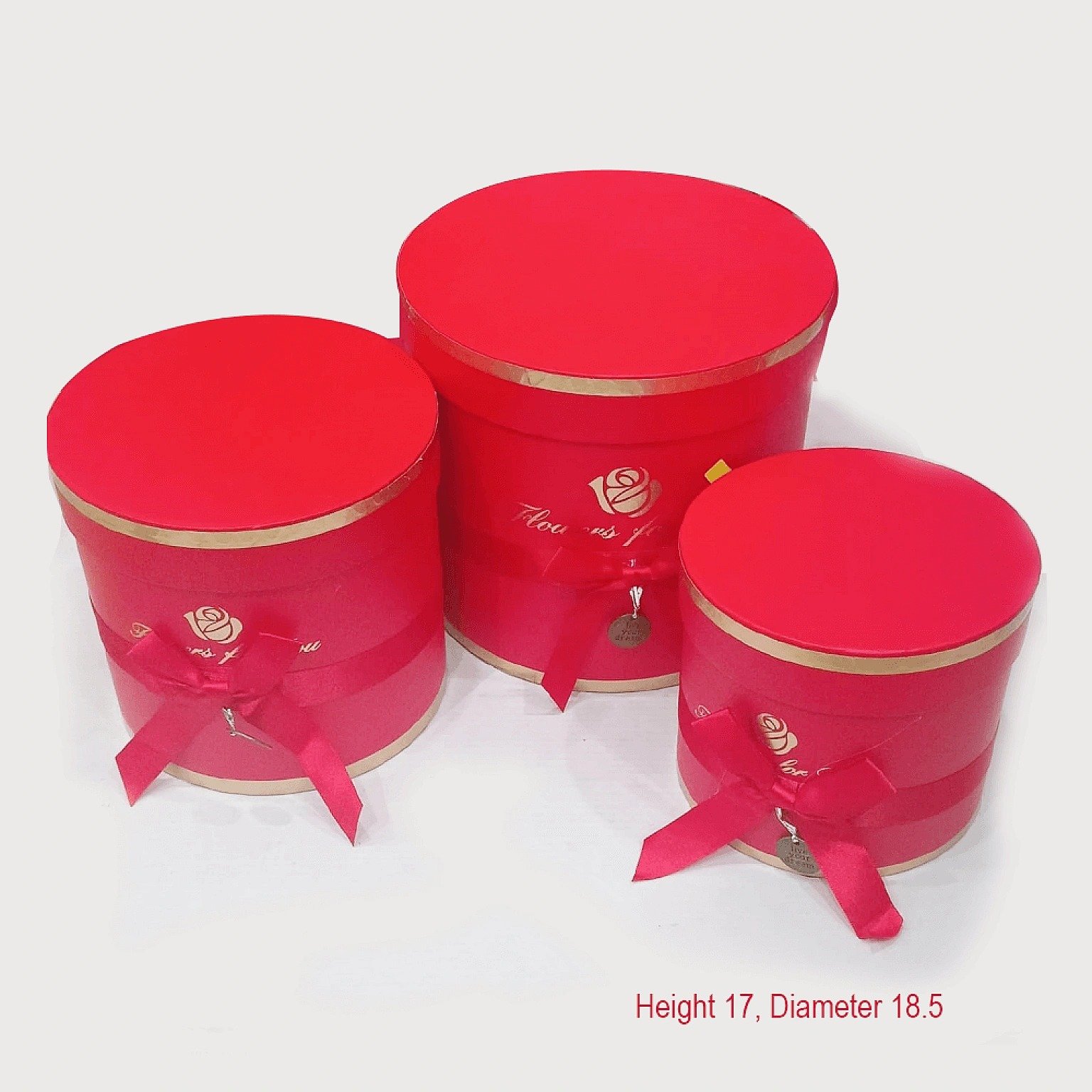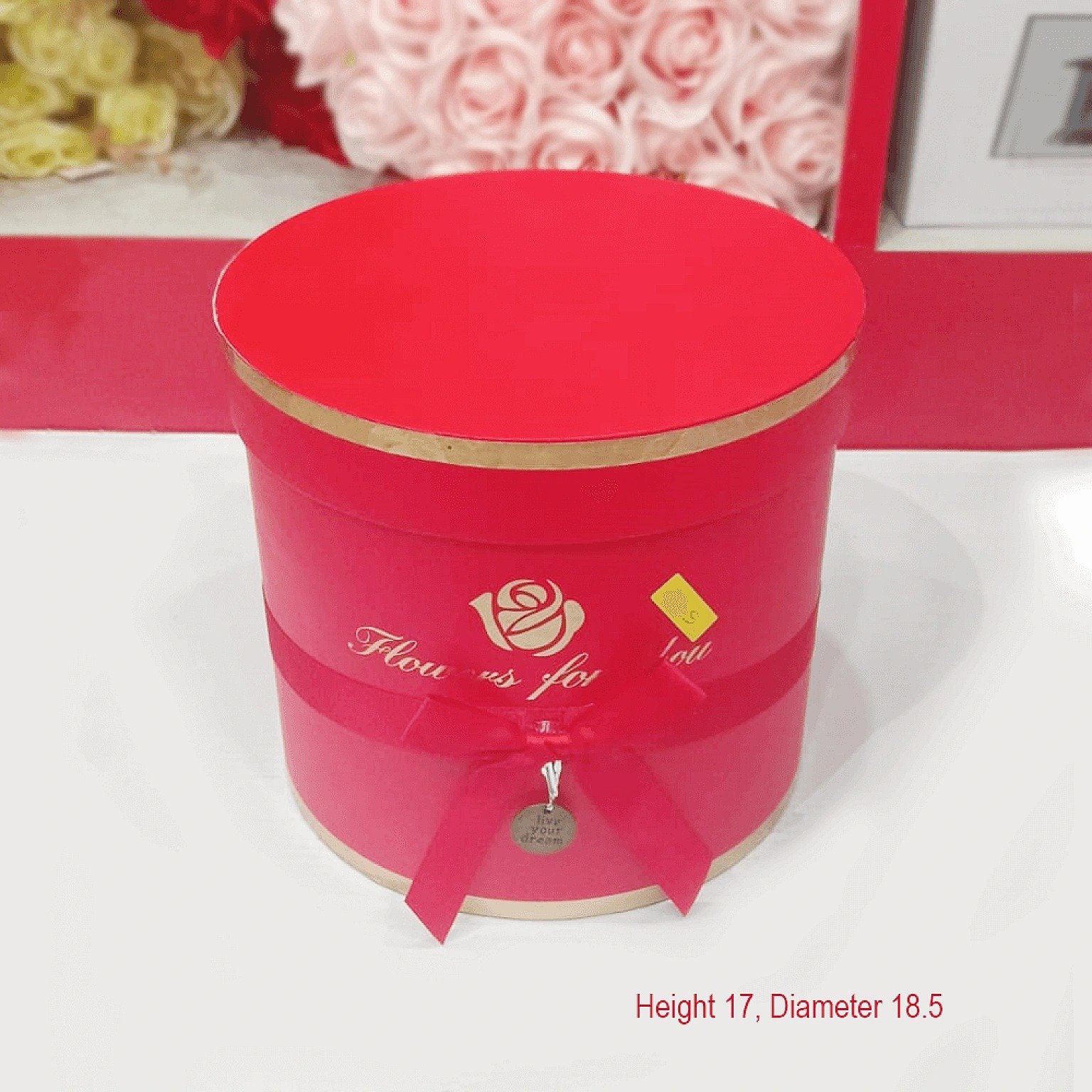 Cylinder Shape Gift Hamper Box (Red and Gold finish) Height 17, Diameter 18.5. Best Round Shaped Gift Hamper Box Quality, Low Price
