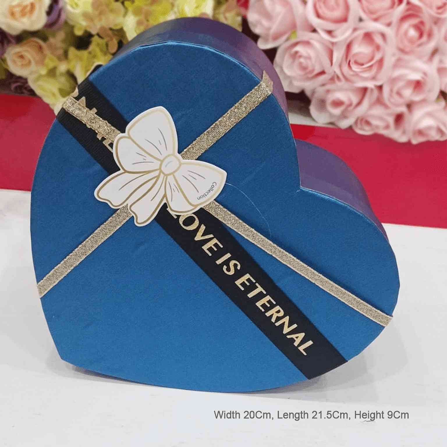 Heart Shape Gift Hamper Box (Blue Check Design) Width 20cm, Length 21.5cm and Height 9cm. Gift Hamper Box Quality, Low Price